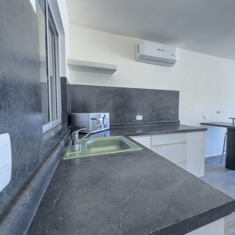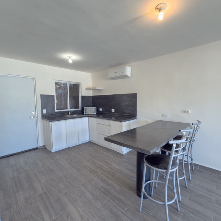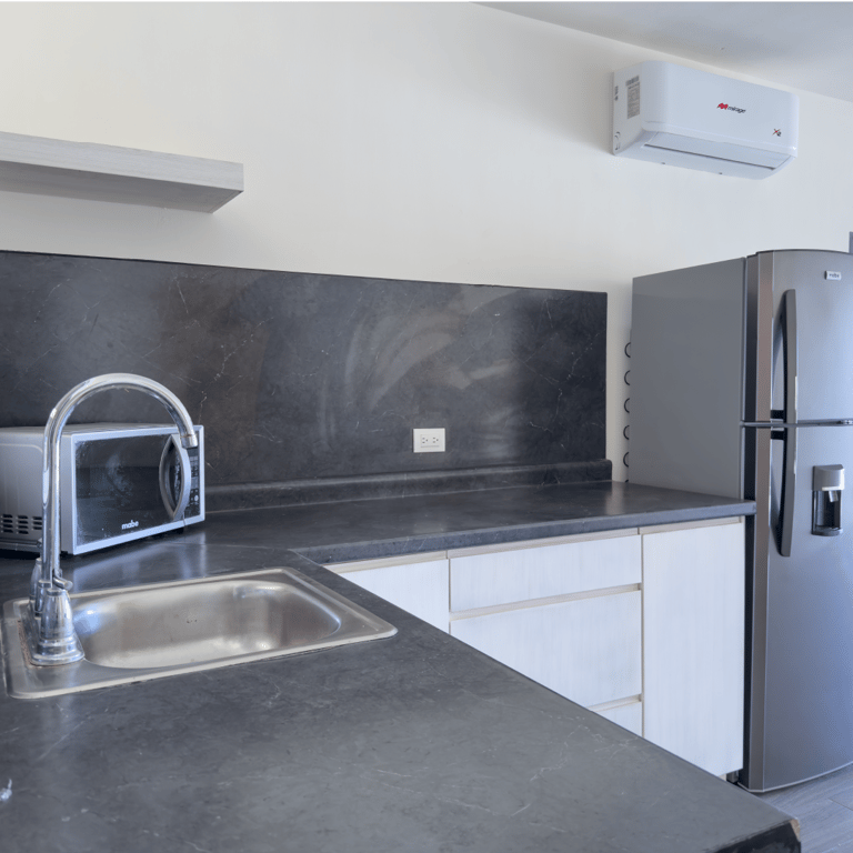 Los departamentos se entregan equipados con cocina, rotoplas de 1,100 litros. y aire acondicionado, según el departamento es el número de aires.